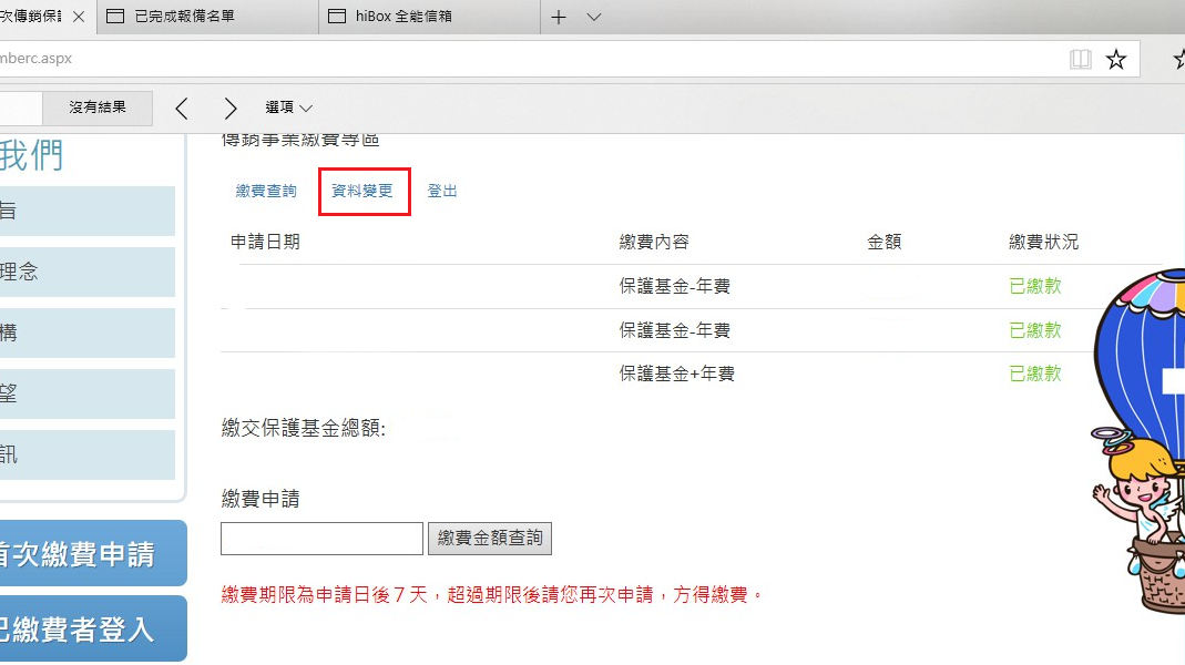 1.先至傳保會網站,並點選頁面左方「已繳費者登入」,再依循您的身分(傳銷事業/傳銷商)選擇登入的路